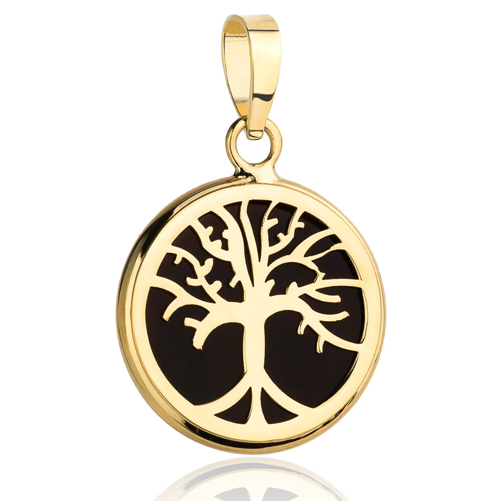 Zawieszka złota drzewko szczęścia w czarnej emalii