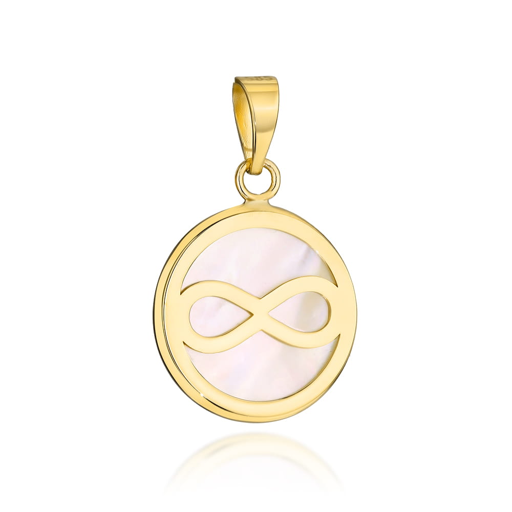 Zawieszka złota kółko z masą perłową i znakiem nieskończoności