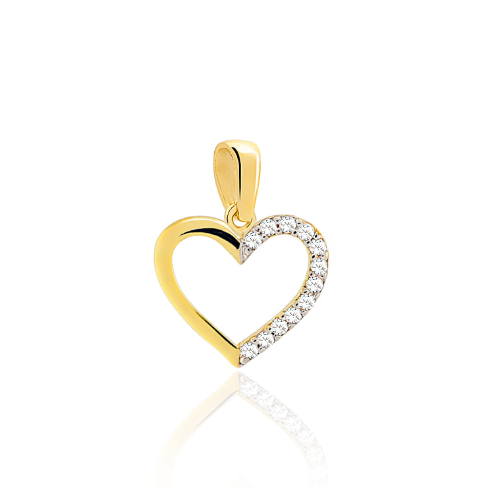 Precyzyjnie wykonana zawieszka próby 585 w kształcie serca ozdobione cyrkoniami z lewej strony. Pamiątka chrztu, pierwszej komunii, bierzmowania, ważnego jubileuszu czy rocznicy.