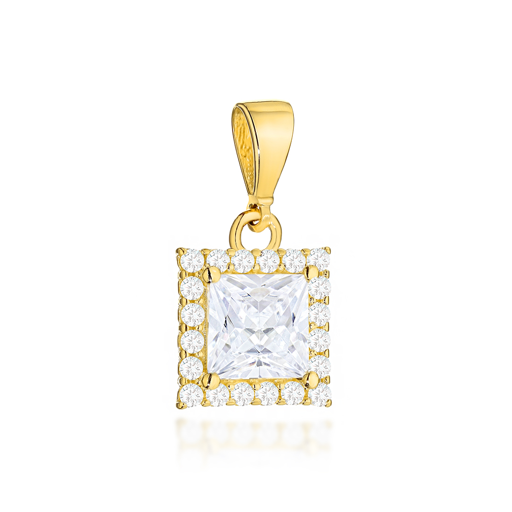 Zawieszka złota z kwadratowym kamieniem i cyrkoniami