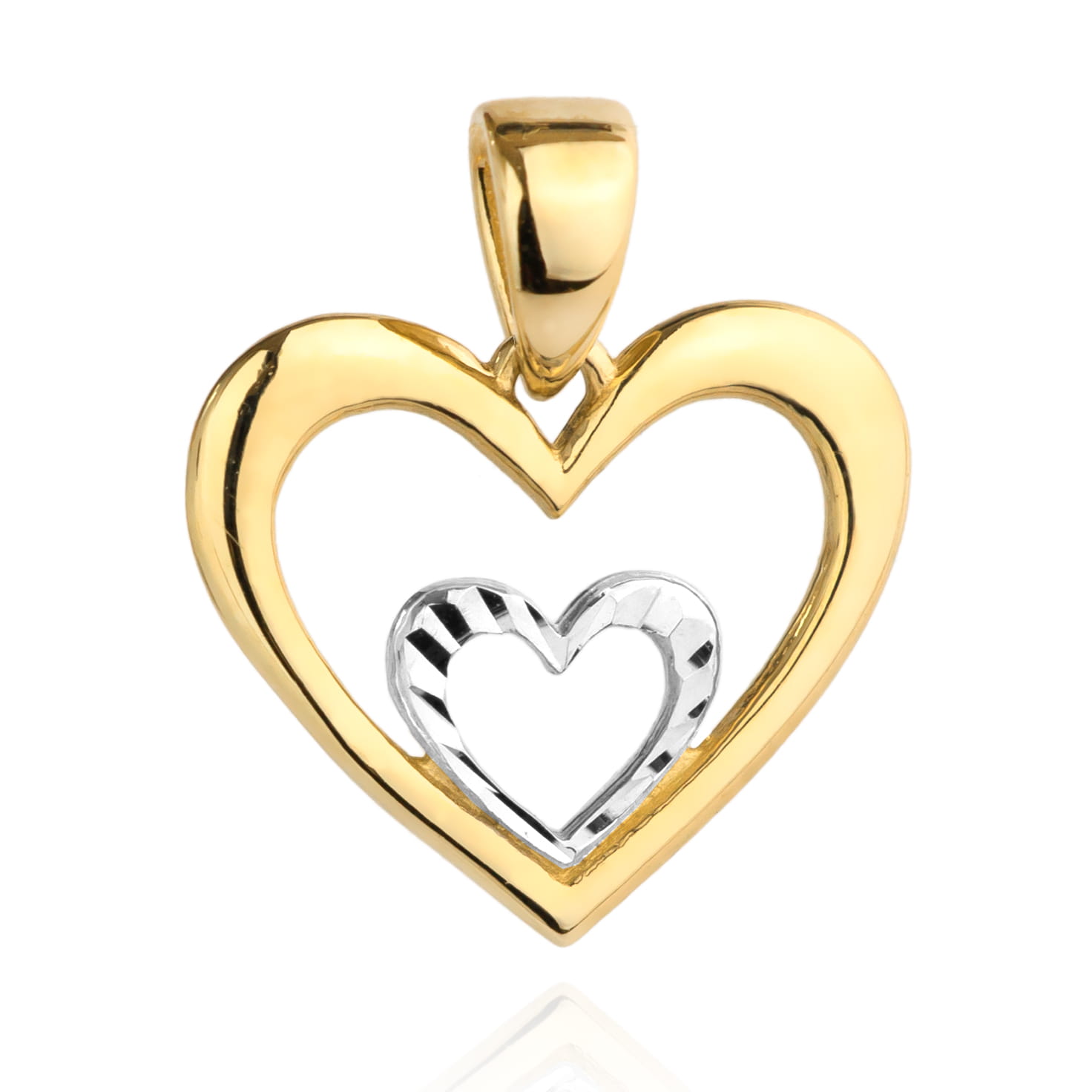 Zawieszka złote serce z serduszkiem diamentowanym z białego złota w środku