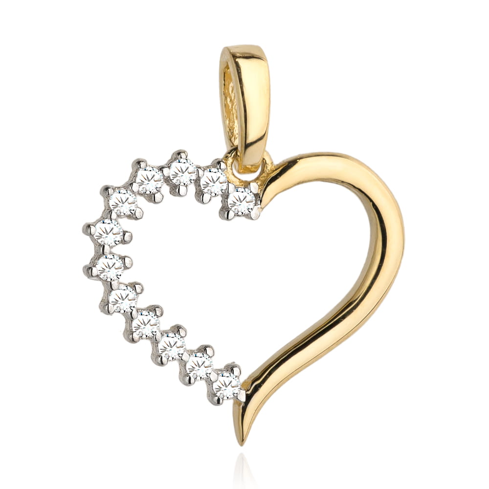 Zawieszka złoty kontur serca w połowie wysadzany cyrkoniami