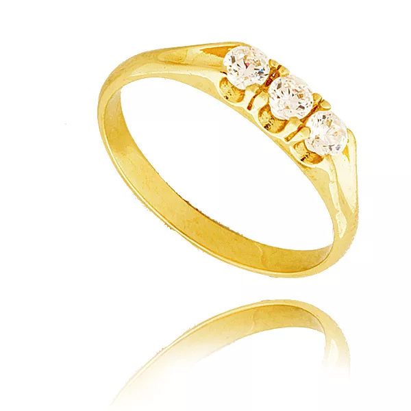 Złoty pierścionek podkreślający subtelny blask kamieni.