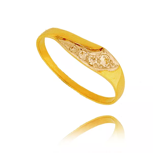 Złoty pierścionek podkreślający subtelny blask kamieni.