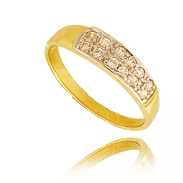 Złoty pierścionek podkreślający subtelny blask kamieni.