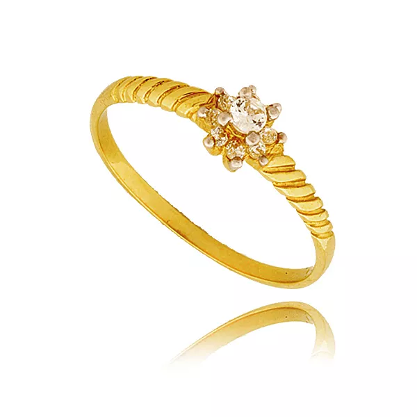 Złoty pierścionek podkreślający subtelny blask kamieni.