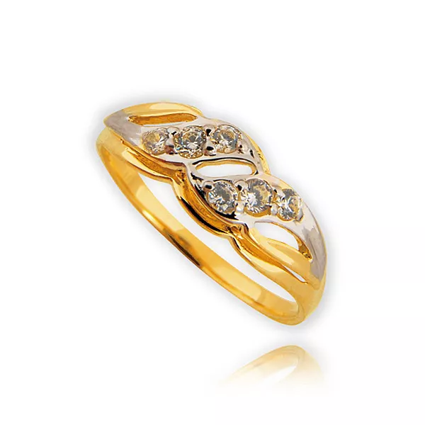 Złoty pierścionek podkreślający subtelny blask kamieni.