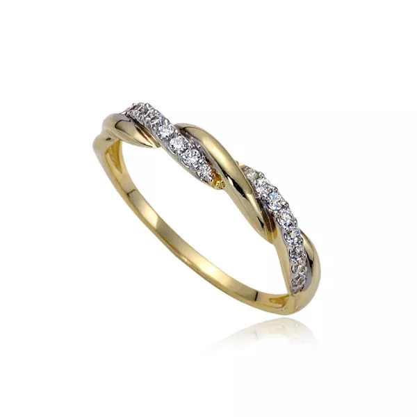Złoty pierścionek podkreślający subtelny blask kamieni.