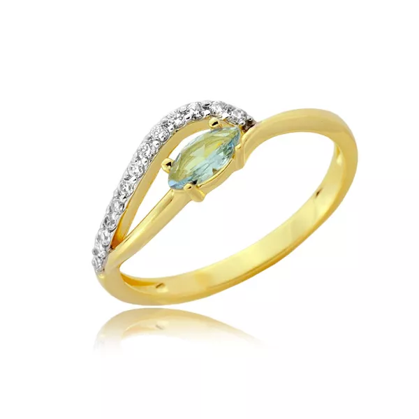 Złoty pierścionek podkreślający subtelny blask kamieni.