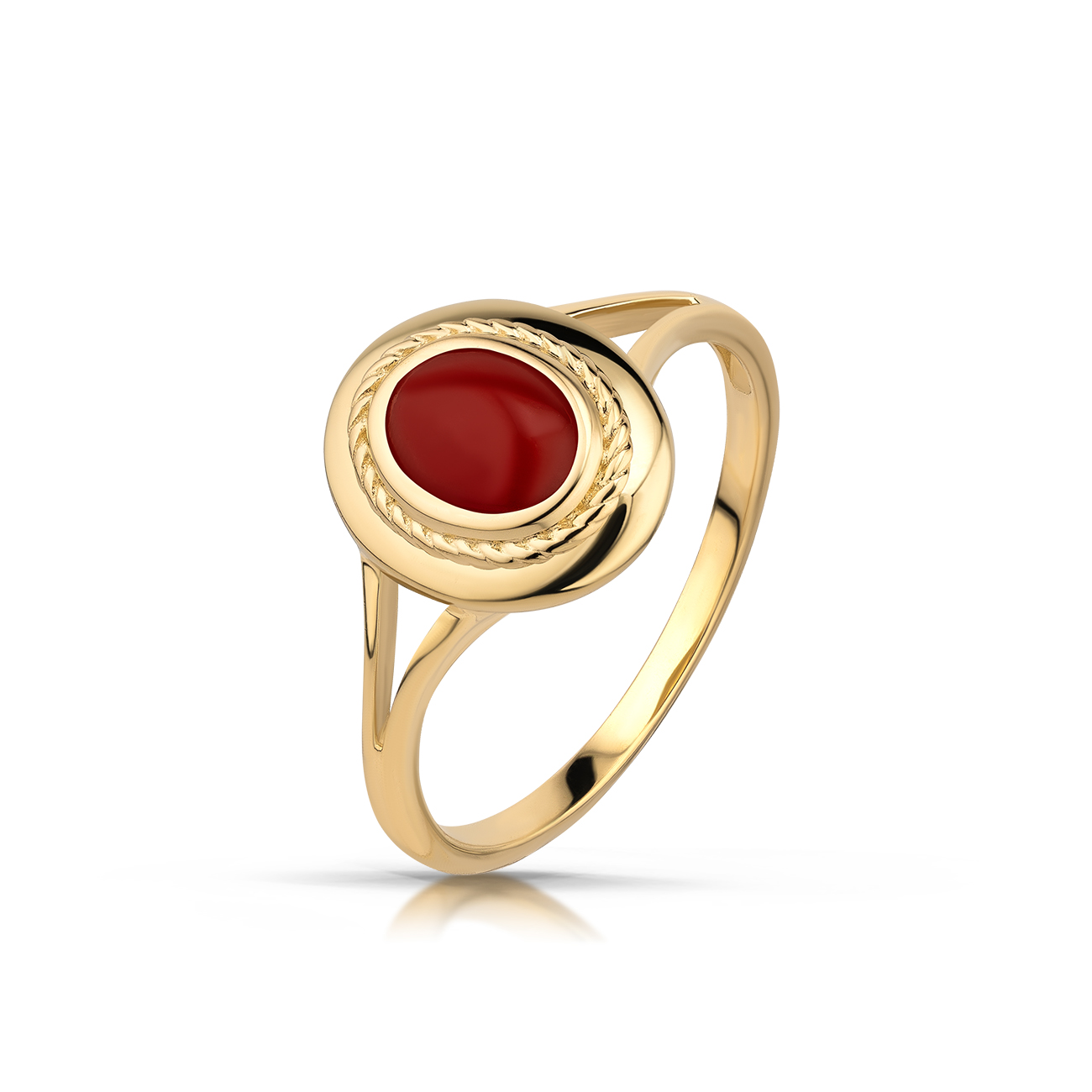 Elegancki pierścionek wykonany z wysokiej jakości złota. W zależności od modelu może zawierać szafiry, rubiny, szmaragdy, tanzanity, granaty lub inne kamienie kolorowe. Uniwersalna forma sprawia, że biżuteria pasuje do każdej stylizacji.
