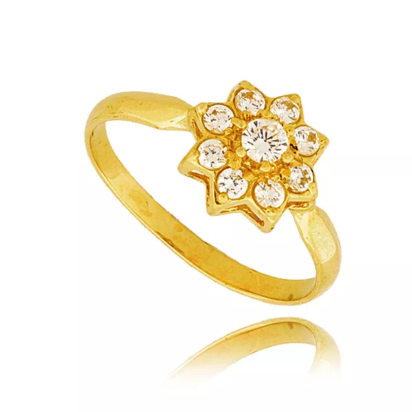 Złoty pierścionek podkreślający subtelny blask kamieni.