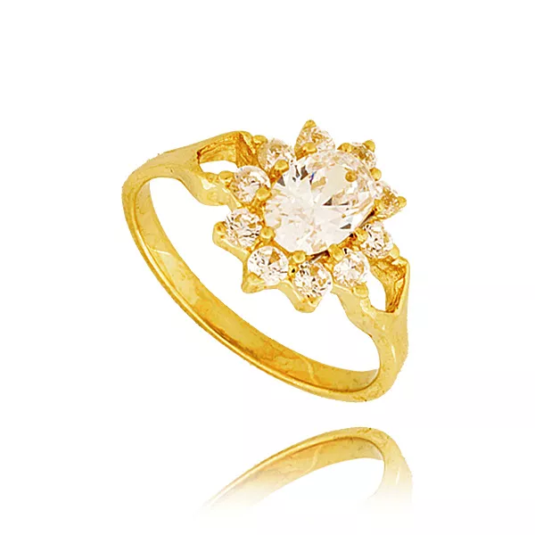 Złoty pierścionek podkreślający subtelny blask kamieni.
