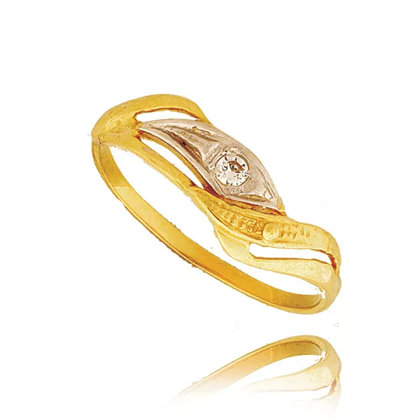 Złoty pierścionek podkreślający subtelny blask kamieni.