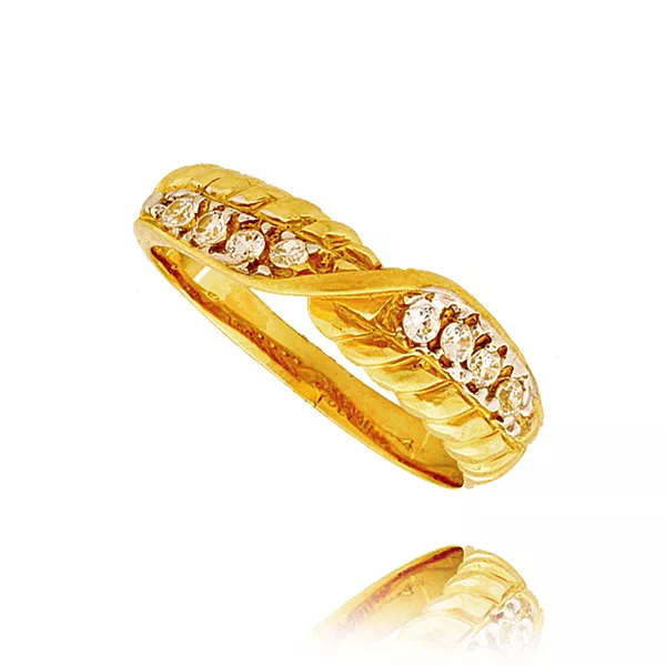 Złoty pierścionek podkreślający subtelny blask kamieni.