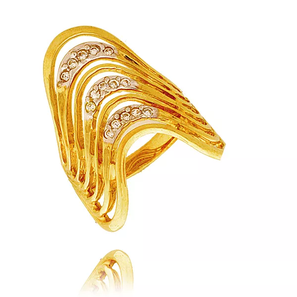 Złoty pierścionek podkreślający subtelny blask kamieni.