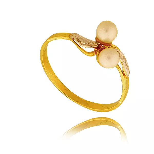 Złoty pierścionek podkreślający subtelny blask kamieni.