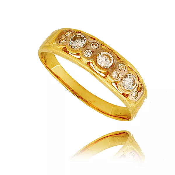 Złoty pierścionek podkreślający subtelny blask kamieni.