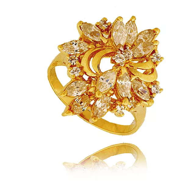 Złoty pierścionek podkreślający subtelny blask kamieni.