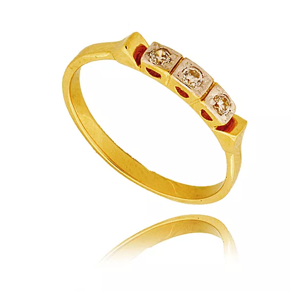 Stylowy pierścionek będący doskonałym wyborem dla osób ceniących jakość i estetykę. Subtelny połysk kamieni pięknie współgra z kolorem złota.