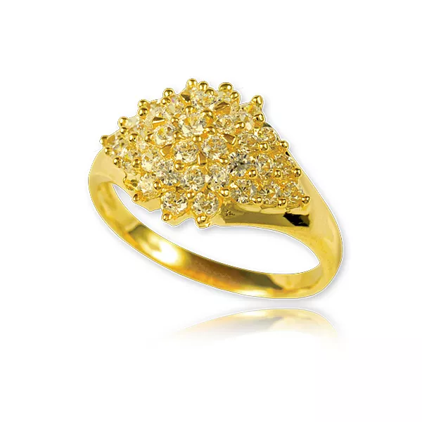 Stylowy pierścionek będący doskonałym wyborem dla osób ceniących jakość i estetykę. Subtelny połysk kamieni pięknie współgra z kolorem złota.
