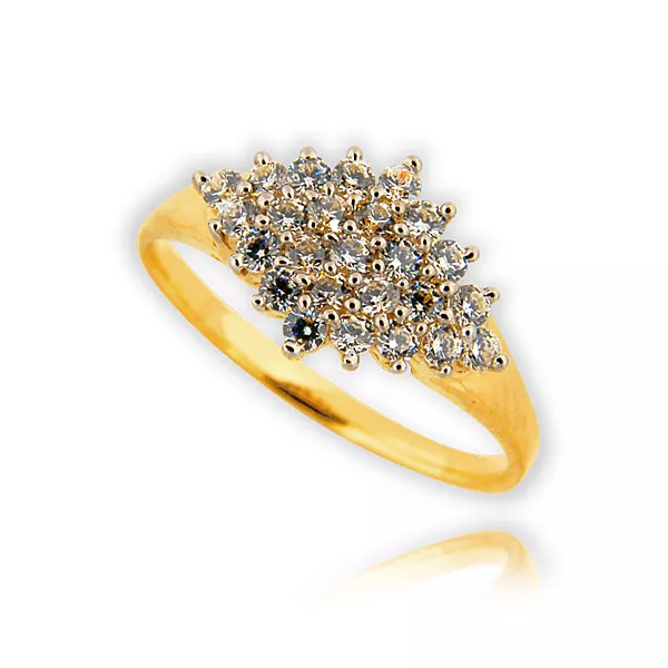 Stylowy pierścionek będący doskonałym wyborem dla osób ceniących jakość i estetykę. Subtelny połysk kamieni pięknie współgra z kolorem złota.