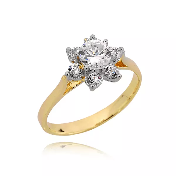 Stylowy pierścionek będący doskonałym wyborem dla osób ceniących jakość i estetykę. Subtelny połysk kamieni pięknie współgra z kolorem złota.