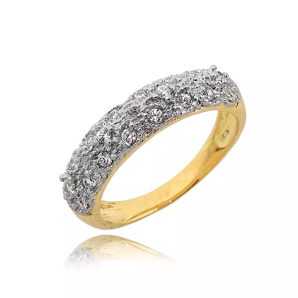 Stylowy pierścionek będący doskonałym wyborem dla osób ceniących jakość i estetykę. Subtelny połysk kamieni pięknie współgra z kolorem złota.