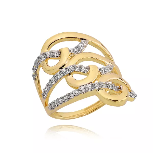 Stylowy pierścionek będący doskonałym wyborem dla osób ceniących jakość i estetykę. Subtelny połysk kamieni pięknie współgra z kolorem złota.