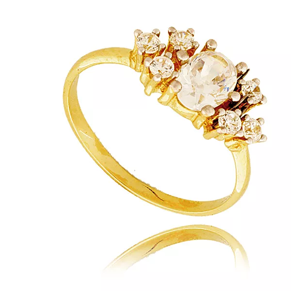 Stylowy pierścionek będący doskonałym wyborem dla osób ceniących jakość i estetykę. Subtelny połysk kamieni pięknie współgra z kolorem złota.