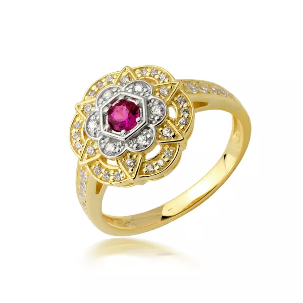 Stylowy pierścionek będący doskonałym wyborem dla osób ceniących jakość i estetykę. Subtelny połysk kamieni pięknie współgra z kolorem złota.