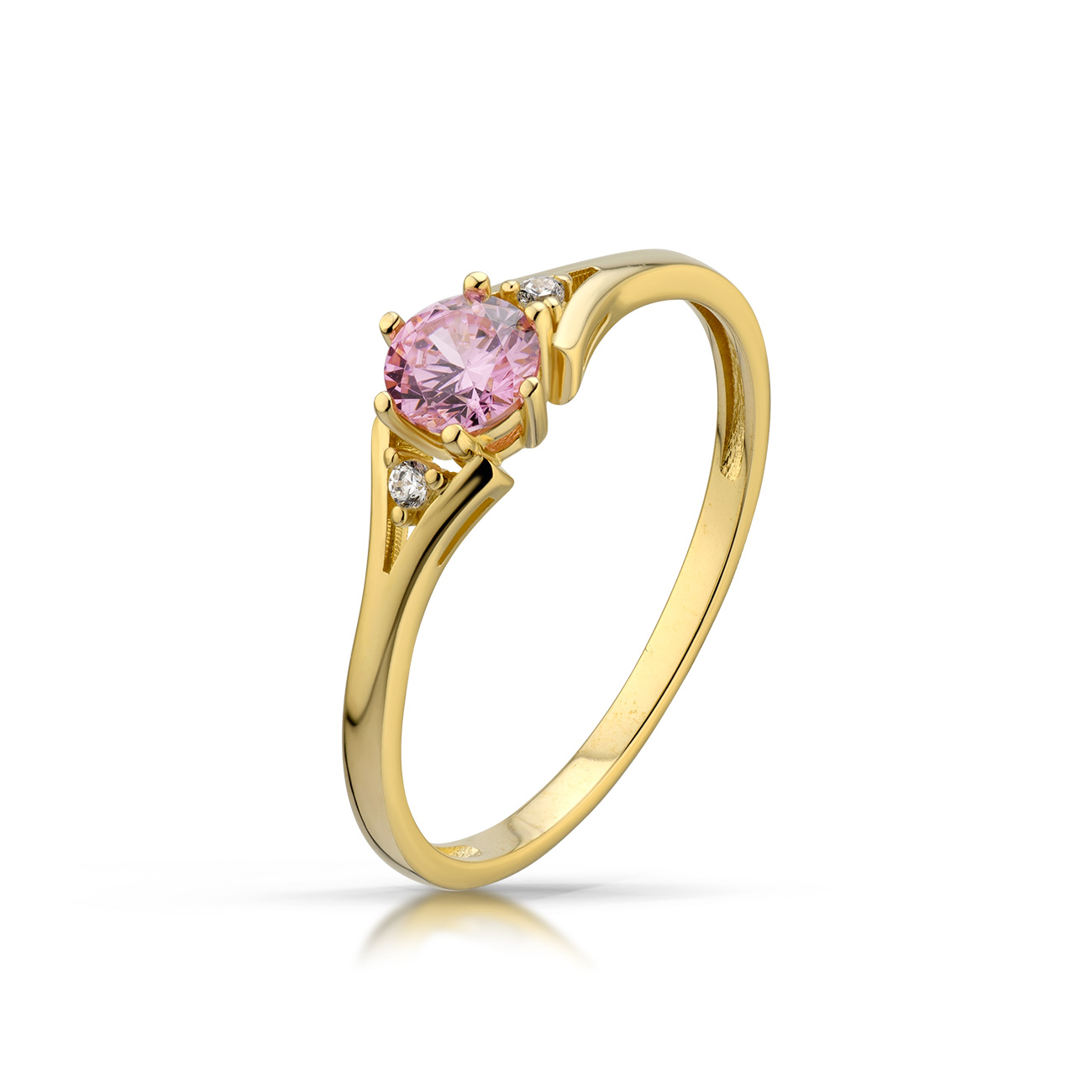 Stylowy pierścionek będący doskonałym wyborem dla osób ceniących jakość i estetykę. Subtelny połysk kamieni pięknie współgra z kolorem złota.