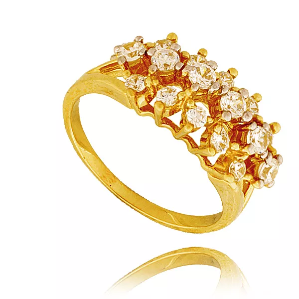 Stylowy pierścionek będący doskonałym wyborem dla osób ceniących jakość i estetykę. Subtelny połysk kamieni pięknie współgra z kolorem złota.