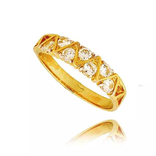 Stylowy pierścionek będący doskonałym wyborem dla osób ceniących jakość i estetykę. Subtelny połysk kamieni pięknie współgra z kolorem złota.