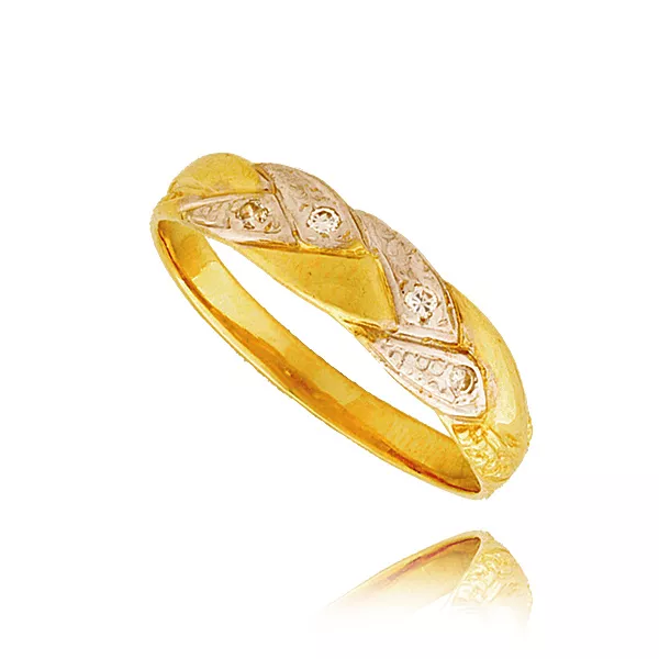 Stylowy pierścionek będący doskonałym wyborem dla osób ceniących jakość i estetykę. Subtelny połysk kamieni pięknie współgra z kolorem złota.