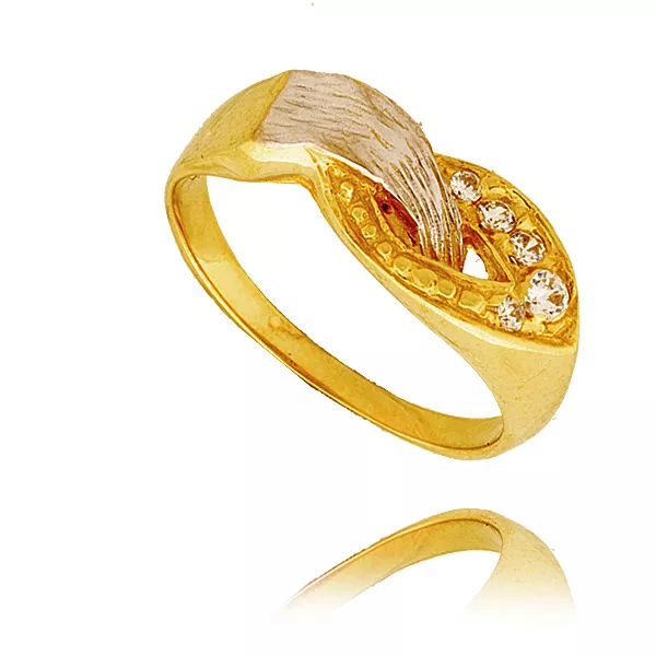 Stylowy pierścionek będący doskonałym wyborem dla osób ceniących jakość i estetykę. Subtelny połysk kamieni pięknie współgra z kolorem złota.