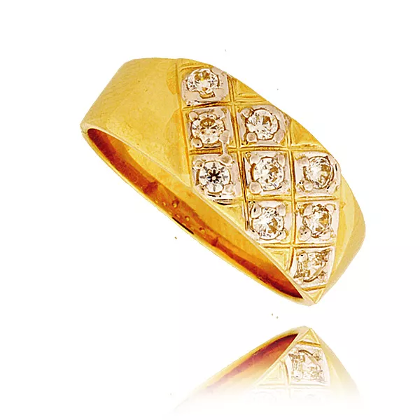 Stylowy pierścionek będący doskonałym wyborem dla osób ceniących jakość i estetykę. Subtelny połysk kamieni pięknie współgra z kolorem złota.