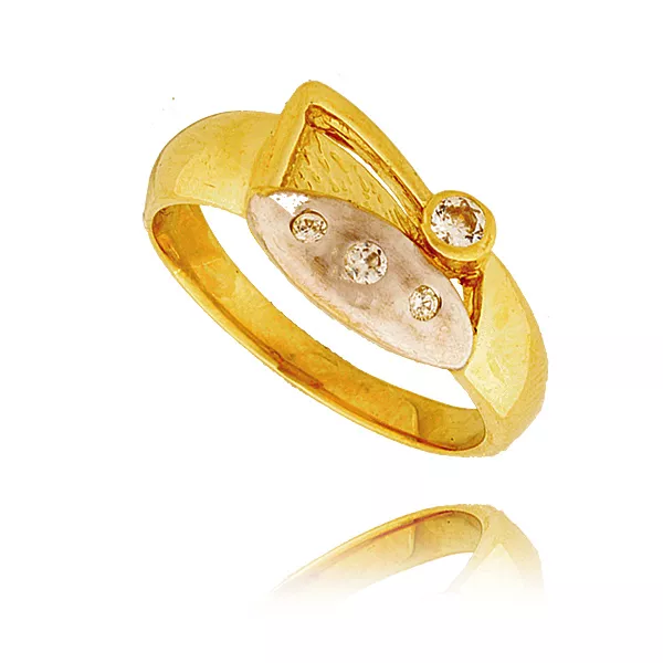 Stylowy pierścionek będący doskonałym wyborem dla osób ceniących jakość i estetykę. Subtelny połysk kamieni pięknie współgra z kolorem złota.