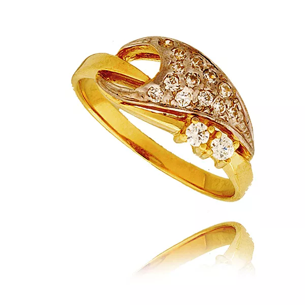 Stylowy pierścionek będący doskonałym wyborem dla osób ceniących jakość i estetykę. Subtelny połysk kamieni pięknie współgra z kolorem złota.