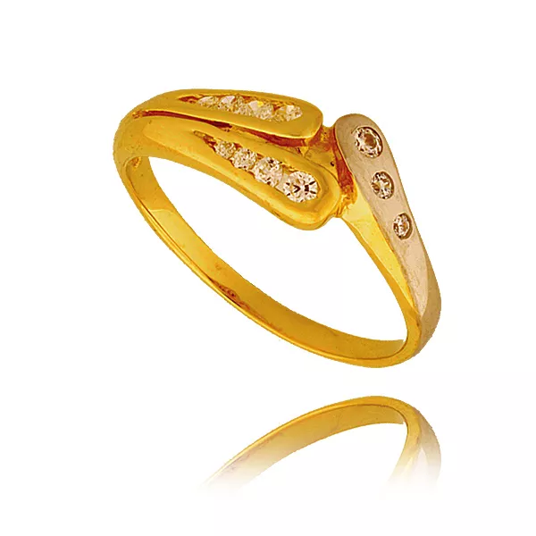 Stylowy pierścionek będący doskonałym wyborem dla osób ceniących jakość i estetykę. Subtelny połysk kamieni pięknie współgra z kolorem złota.