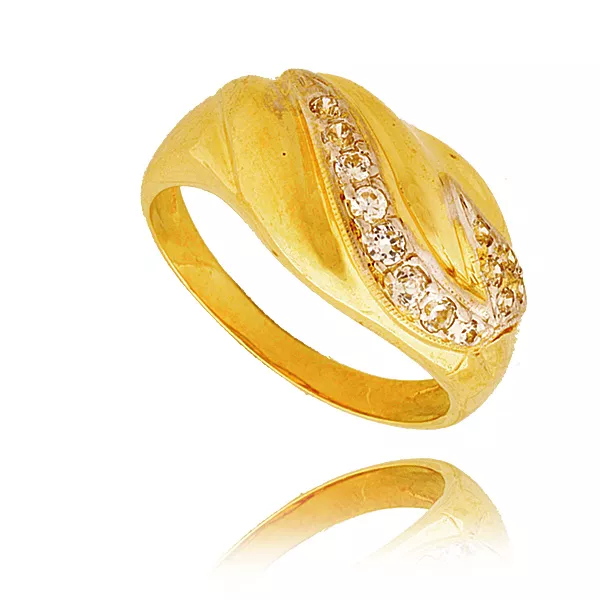 Stylowy pierścionek będący doskonałym wyborem dla osób ceniących jakość i estetykę. Subtelny połysk kamieni pięknie współgra z kolorem złota.
